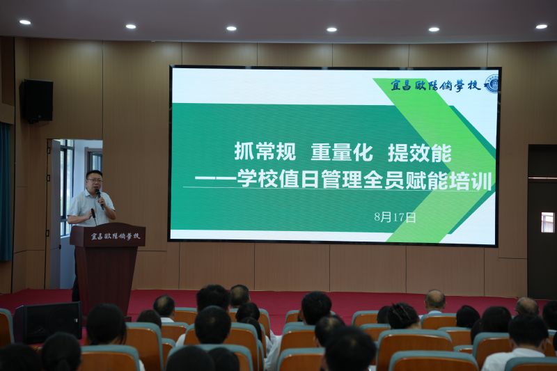 下午,黃校長(zhǎng)圍繞"抓常規(guī)、重量化、提效能"的工作要求,全面闡述了宜昌歐陽(yáng)修學(xué)校實(shí)施的多級(jí)值日管理體系。該體系科學(xué)劃分行政、教師、學(xué)生三個(gè)管理層面,通過明確職責(zé)、細(xì)化流程、強(qiáng)化落實(shí),構(gòu)建起環(huán)環(huán)相扣、層層遞進(jìn)的閉環(huán)式管理機(jī)制,為學(xué)校精細(xì)化管理提供了有力保障。