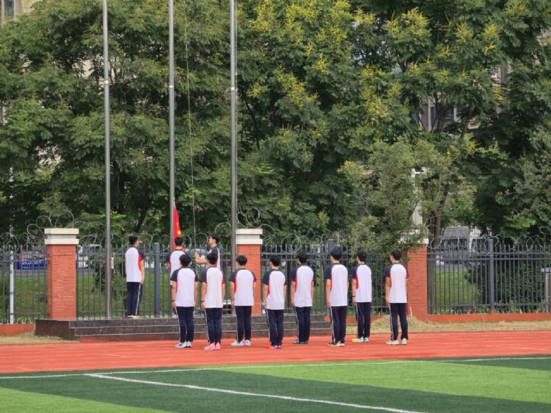 激昂的《義勇軍進行曲》奏響,全體人員肅立,目光堅定地注視著五星紅旗冉冉升起。鮮紅的國旗在微風中飄揚,嘹亮的歌聲回蕩在校園上空,新生們緊握雙拳、神情肅穆,在莊重的升旗儀式中深刻感受愛國精神的洗禮,將“強國有我”的信念深深植根心中。