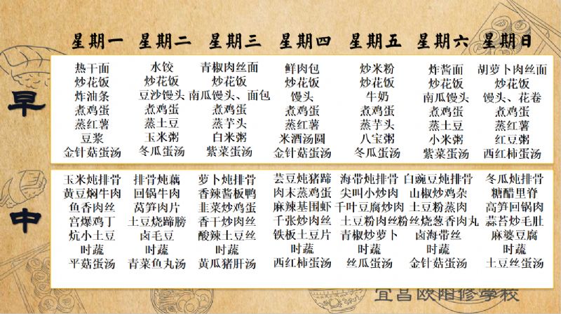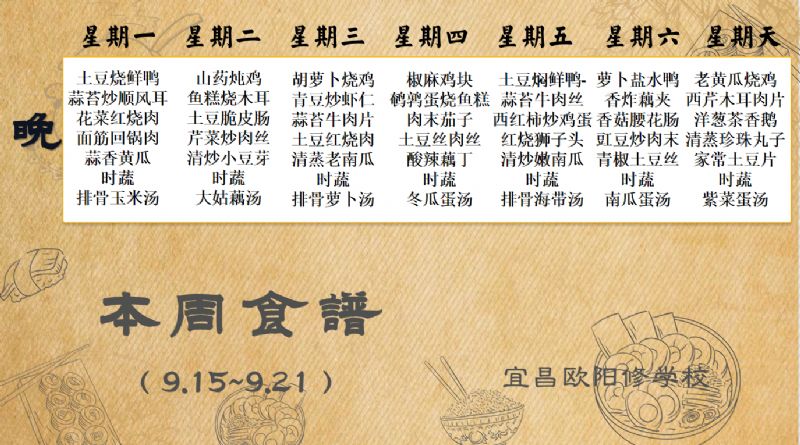 宜昌歐陽修學(xué)校每周食譜(9月15日-9月21日)